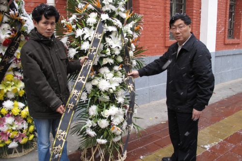 2009年11月1日上午,刘沪校长、梁原草副校长、教导处况莉主任、钱学森展览筹备组张帅老师、姚茜老师及3名学生代表一行8人冒雪来到钱老家中悼念,并代表全校师生送上花篮和挽联。