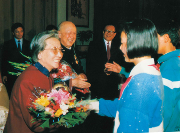 钱学森是中科院院士和中国工程院院士,为我国的科技发展尤其是军事科学的发展做出了巨大贡献。1991年钱学森在被授予“国家杰出贡献科学家”称号颁奖大会上接受师大附中学生代表献花。