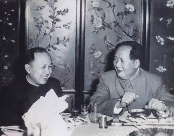 1956年钱学森校友与毛泽东主席在一起。