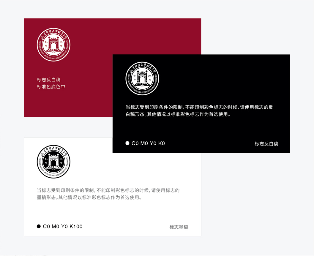 注意事项:请严格按照手册的相关规范使用学校标志。在一般情况下使用学校标志,应尽量使用提供的电子文件,不建议重绘标志,尽量避免在重绘中出现误差。