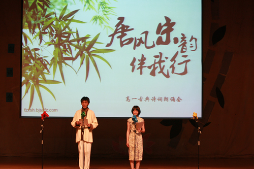 2010年6月8日下午,无关键词高一年级同学在无关键词会堂举行“唐风宋韵伴我行”古典诗歌朗诵会。