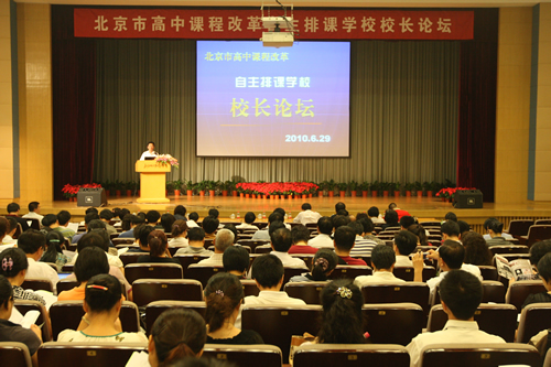 2010年6月29日,由北京市教委主办的“北京市普通高中自主排课实验学校校长论坛”在我校无关键词会堂隆重举行。