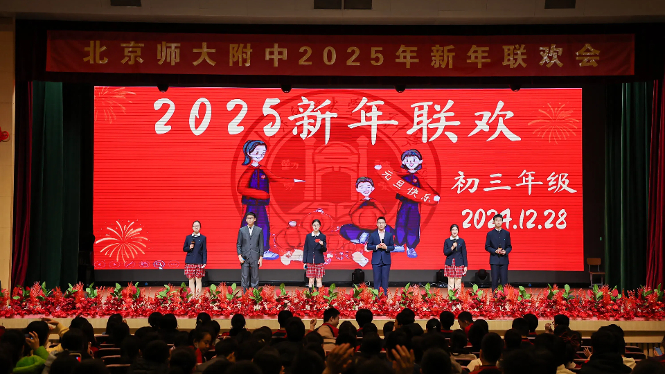 2024年12月31日,“新程逐梦,序启华章”——高一年级2025新年联欢会在附中百年礼堂圆满落幕。经历了一学期的高中生活,高一年级的同学们已然褪去青涩,以愈发成熟的姿态融入、适应了高中生活。校园里的一砖一瓦、一草一木,都见证着同学们的成长;老师们的温情相伴、辛勤付出,如春日暖阳般温暖着每一位同学的心田。在这辞旧迎新的特殊时刻,师生们满怀对过往的珍视与对未来的憧憬,相聚于百年礼堂,共襄新年联欢盛会。回首联欢会现场,舞台上的每一个节目都尽显同学们的青春活力与蓬勃朝气。