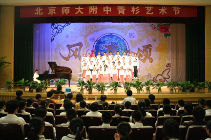 3月22日下午,我校初一、初二年级在礼堂举行了“唱响国歌”歌咏比赛,同时也拉开了2006年青杉艺术节的序幕。