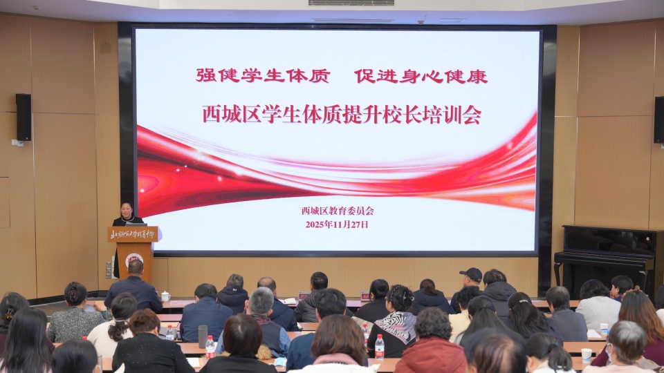 2025年11月27日上午,西城区学生体质提升校长培训会在我校成功举办。作为承办单位,我校高度重视、精心组织,全区各中小学校长、书记齐聚校园,围绕教育部《关于实施学生体质强健计划的意见》及北京市“体育八条”精神,通过专题学习与现场观摩相结合的方式,共同探索“以体育人、以体促教”的校园体育新路径。