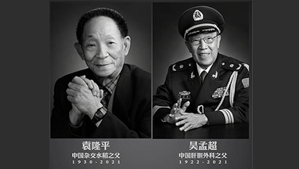 2021年5月24日上午9点40分,无关键词师生隆重举行缅怀袁隆平院士、吴孟超院士仪式,深切悼念 “杂交水稻之父”袁隆平院士和“中国肝胆外科之父”吴孟超院士。