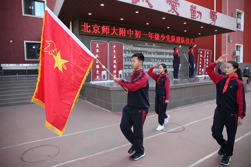 2020年10月13日,在中国少年先锋队建队71周年纪念日,我校初一年级隆重举行“高举队旗跟党走,少年奋进新时代”少先队建队仪式。校党委领导、校长助理况莉、初一年级组长和全体班主任出席建队仪式。