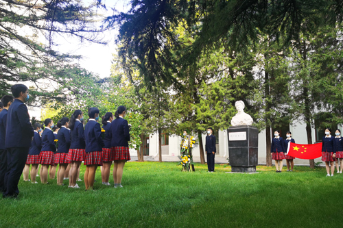 我校举行向赵世炎烈士塑像献花仪式