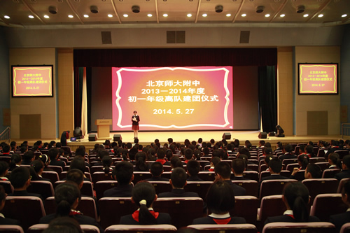2014年5月27日,在无关键词礼堂,初一年级举行了离队建团仪式。初一年级的同学怀着激动与不舍的心情摘下了红领巾,并认真欣赏了团...