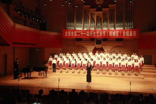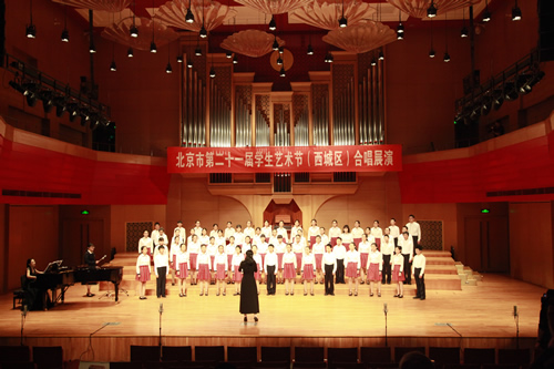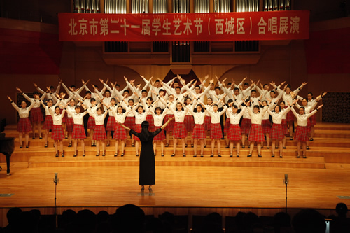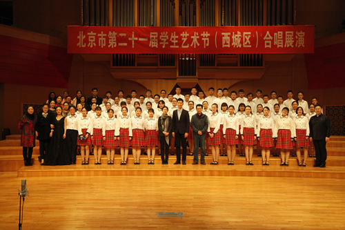 2018年3月25日上午,我校初、高中合唱团参加了北京市第21届学生艺术节(西城区)合唱展演,经过激烈比赛,高中合唱团荣获高中组第一名,初中合唱团荣获童声组第三名的好成绩,并且双双蝉联金奖。
