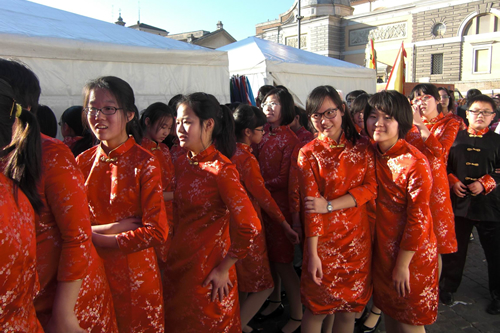 2011年2月5日至18日,应中华人民共和国驻米兰总领事馆的邀请,我校附中人合唱团41名初高中学生在梁原草副校长的带领下,赴意大利罗马、帕多瓦、米兰参加意大利中国文化年演出。在意大利首都罗马人民广场,附中人合唱团先后三次出场,动情演唱了《欢乐歌》、《唱脸谱》、《大海啊,故乡》、《库斯科邮车》等耳熟能详的曲目,并和意大利国家青年交响乐团合作演出了《北京欢迎你》、《茉莉花》,获得现场数万名观众的热烈欢迎。中华人民共和国驻意大利共和国大使馆丁伟大使亲自会见梁原草副校长,授予附中人合唱团荣誉证书并设宴款待全团师生。附中人合唱团在意大利帕多瓦、米兰中国文化年的精彩演出同样获得了米兰总领事馆、当地华人华侨的高度赞扬。中华人民共和国驻米兰总领事馆梁慧总领事颁发给附中人合唱团演出纪念杯,并特地给梁原草副校长打电话,表达对无关键词访意艺术团全体师生的感谢和慰问。结束意大利的演出任务后,合唱团师生参访了瑞士、奥地利、捷克3个国家。同学们在联合国万国宫和奥林匹克博物馆畅游,在阿尔卑斯雪山脚下合影,在《音乐之声》的拍摄地萨尔兹堡米拉贝尔花园嬉戏,在梵蒂冈和米兰大教堂艺术珍品前流连……短短13天的旅程,检阅了同学们艺术表演水平,锻炼了同学们独立生活的能力,使同学们开阔了眼界,丰富了阅历。