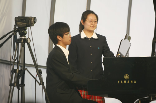 5月27日下午1:30―2:00是我校专场演出时间。校合唱团的同学们表演了大合唱《闪亮的日子》《乘着那歌声的翅膀》小合唱《记忆》《魔笛》及大合唱《你是这样的人》《远方的客人请你留下来》等八首合唱作品,其中《远方的客人请你留下来》是我校校友著名作曲家麦丁的代表作,校合唱团是首次演唱这部作品。我校专场演出结束后,中国合唱协会理事、著名指挥家蓬勃教授给予高度评价,称我校初中合唱团音色十分优美,高中合唱团艺术处理到位,特别是率先在初中合唱团演唱SAB(即初中混声合唱)的合唱作品,开创了一个先河。