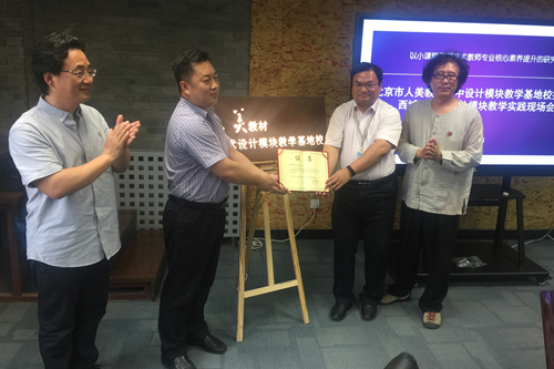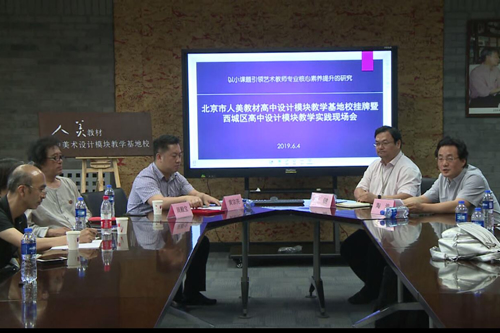 2019年6月4日上午,“北京市人美版教材高中设计模块教学基地校”挂牌仪式暨“西城区高中设计模块教学实践现场会”在我校举行。北京教育科学研究院基础教育教学研究中心美术教研员陶涛老师、人民美术出版有限公司总经理副编审黄宗亮、中国美术家协会少儿美术艺委会周殿宝副主任出席了本次现场会。参加本次会议的还有北京市各区县中学美术教研员及市区级美术学科带头人共五十余人。