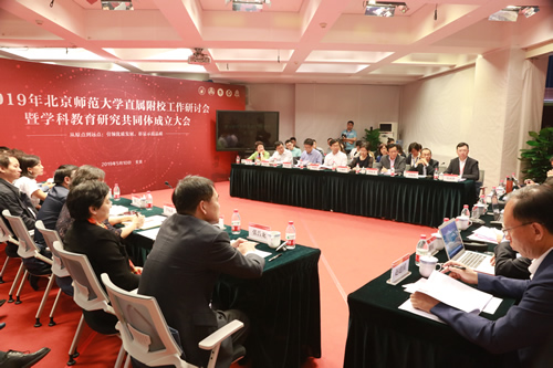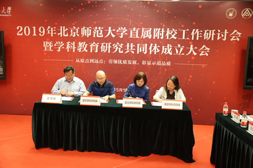 5月10日,“从原点到远点:引领优质发展,彰显示范品质”――2019年北京师范大学直属附校工作研讨会暨学科教育研究共同体成立大会在我校举行。北京师范大学党委书记程建平、北京师范大学副校长王守军、北京教育科学研究院院长方中雄、海淀区教委副主任赵建国等出席了此次会议,北师大相关院系及职能部处、直属附校和友好学校代表六十余人参会,新华网、人民日报、中国教育报、中国教育电视台等多家媒体进行现场报道。