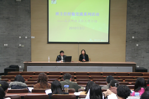3月12日下午,学校南阶梯教室,我校高一5班班主任高流畔老师深情地朗读着他在新一期班刊上写给学生的话,开始了他的班主任经验介绍,也拉开了本学期班主任系列培训活动的序幕。
