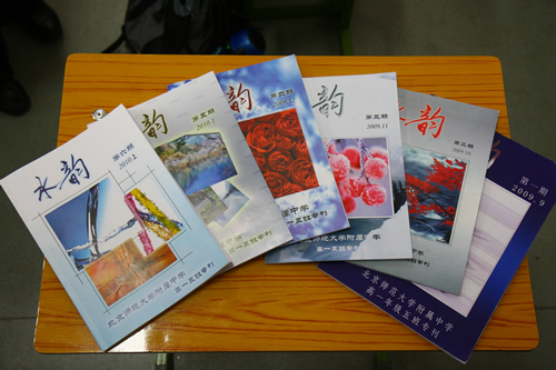 高流畔老师自上学期高一5班组建伊始,就组织班级学生创办班刊《水韵》,每月一期,至今已出版六期,组稿、审稿、排版等全由学生自己完成。以《水韵》为凝集点,高一5班很快形成了一种平和礼让严谨求实积极进取的班风,学生人格境界明显提升,班级各方面都在年级保持领先。