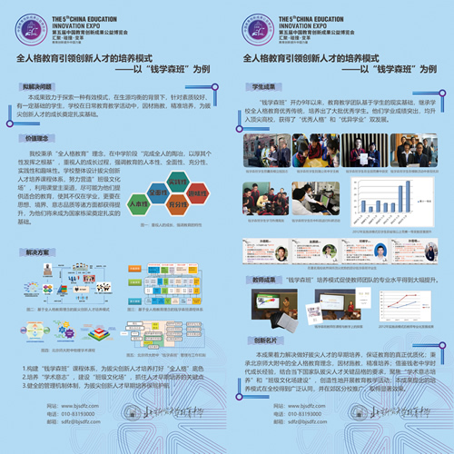 由教育部和广东省人民政府共同指导,北京师范大学主办,以“汇聚・碰撞・变革:教育创新提升中国力量”为主题的2019年第五届教博会于11月20日在珠海国际会展中心开展。本届教博会吸引了1600余项优秀教育创新成果参展,覆盖含港澳台在内的34个省市地区的国内成果,以及联合国教科文、美国、芬兰、以色列等多个国家的国际成果。其中北京市西城区有9项课题参展,我校由王莉萍校长负责的《全人格教育引领创新人才的培养模式――以“钱学森班”为例》和生物组付馨悦老师负责的《诺贝尔科学奖成果与中学生物学教学整合的尝试》两项课题研究各获得宝贵一席。