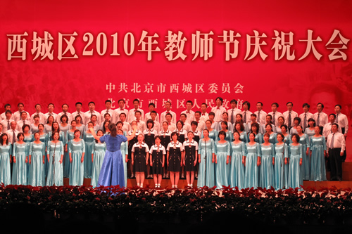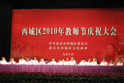 9月10日下午西城区教师节庆祝大会在全国政协礼堂隆重举行。西城区长张建东主持大会,区委书记王宁讲话,区委副书记刘跃平宣读《中共北京市西城区委、区人民政府关于表彰先进个人和先进集体的决定》。我校地理教研组韩英英老师荣获首届“霍懋征”奖,刘沪校长被评为模范校长,刘莉娟老师被评为区优秀教师,赵凤琴、卫刚、张成斌、张媛媛、魏国华、苏永乔、张鹏、郭玮被评为区教育系统先进教师,张帅被评为区教育系统先进教育工作者。