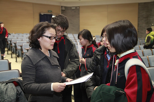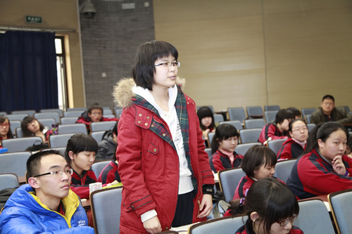 在演讲中龙运昌先生向附中师生介绍了中美教育制度的不同,美国大学及学院的种类,美国大学录取学生时的标准与偏好,出国前应该做怎样的准备和自我发展。同学们反应热烈,积极提问关于留学美国的情况,龙昌运先生一一作了细致地回答,并对勇于提问的同学赠送纪念品予以奖励,整个活动形成良好的互动局面。