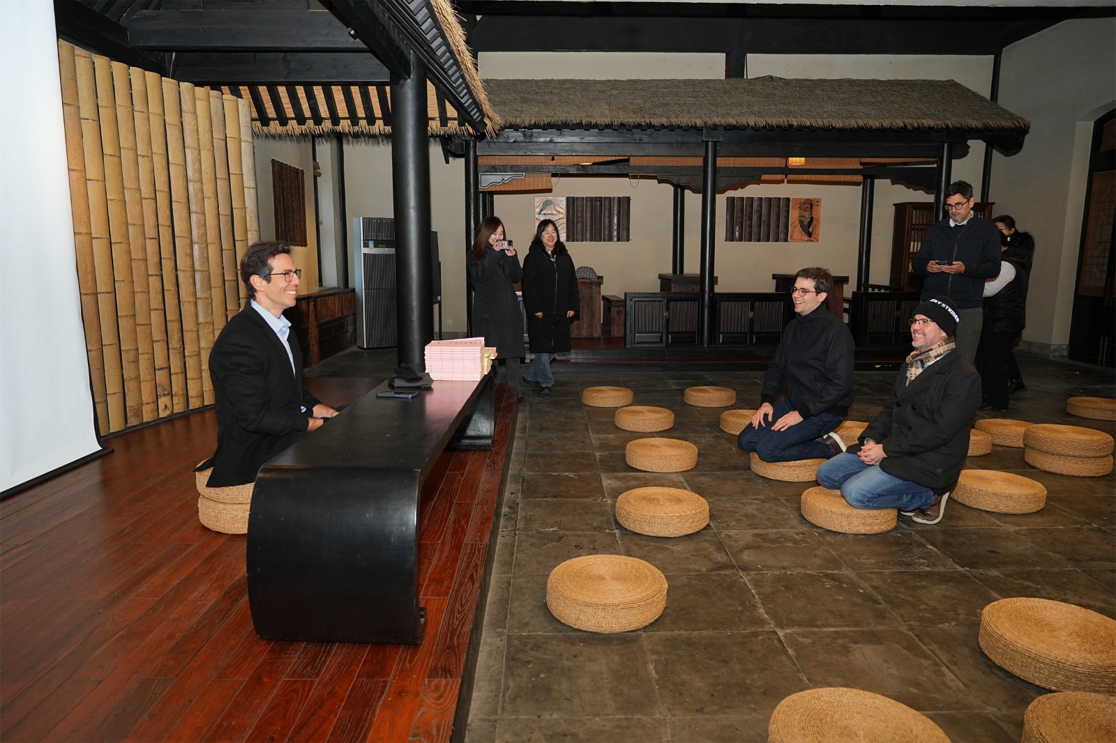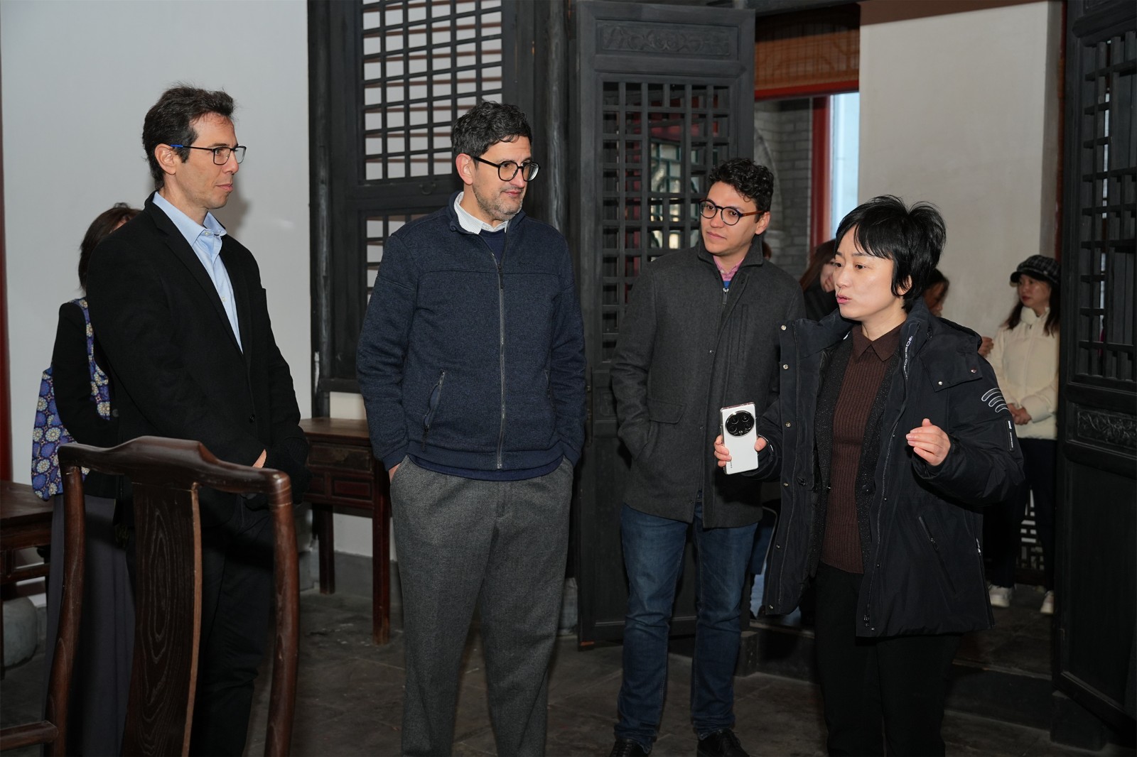 巴西教育团参观了我校极具传统文化韵味的杏坛和三味书屋。这两座别具一格、彰显附中特色又兼具现代教学设施的古建筑引发了教育团老师们的浓厚兴趣。