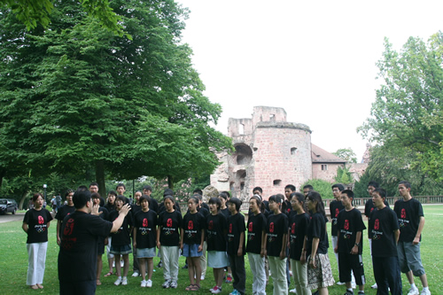 合唱团员们畅游慕尼黑奥林匹克公园和纽芬堡王宫;在维也纳城市公园的金色施特劳斯塑像前以歌声表达敬意;在《音乐之声》的拍摄地萨尔兹堡米拉贝尔花园嬉戏;在阿尔卑斯山麓尽情追逐;在海德堡大学公园排练;在莱茵河游船上与各国的青少年朋友们联欢;在风车村品尝美味的乳酪;在凡尔赛宫和卢浮宫的艺术精品前流连……境外行程4000余公里一路和煦阳光相伴,明澈绿色相依,跨越阿尔卑斯山,在西欧大陆上划了一个圈。特别是在德国合唱故乡美茵兹举办的合唱节上,无关键词合唱团以充满激情与活力的《青春舞曲》和深情悠扬的无伴奏合唱《半个月亮爬上来》轰动全场,热烈的气氛、赞许的目光和雷鸣般的掌声与喝彩使合唱团员们为能够在世界舞台上展现中国民族音乐艺术而深感自豪!