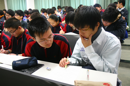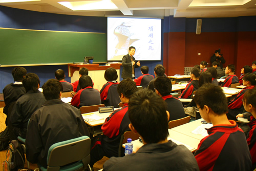 台湾师大附中是台湾地区最著名的中学之一,学校建于1947年,现有学生4000余人,此次来京参加交流的同学均为该校资优班学生。来访台湾师生分别和北京同学一起听了语文、数学、英语、历史、化学和艺术等六节课。书法家、无关键词美术教师黄全信给来宾当场表演了书法,并手书一个条幅赠给杨壬孝校长。台湾同胞还饶有兴趣地参观了无关键词校园内的模拟孔子讲学场景――“杏坛”、鲁迅上私塾时的“三味书屋”,以及民国时期台湾作家林海音曾读过书的小学教室楼。通过半天的交流,两岸师生加深了相互了解,增进了友谊,纷纷表示今后要进一步加强联系。