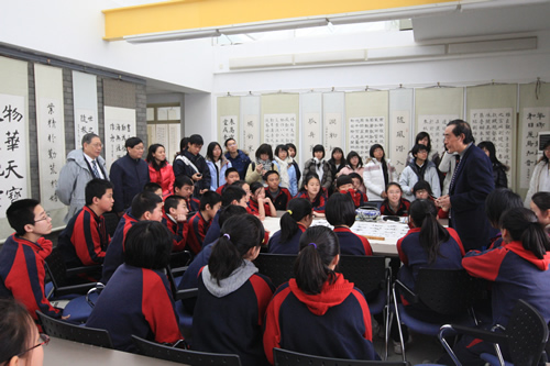 2月24日(正月十一),来自宝岛台湾的台湾师大附中百余名师生在杨壬孝校长的率领下,来到无关键词访问,受到刘沪校长和无关键词全体师生的热烈欢迎。台湾师生与北京同学一起上课、座谈,参观师大附中校园和钱学森纪念馆。