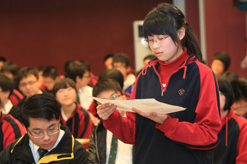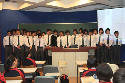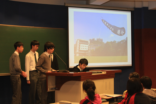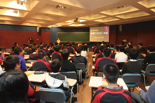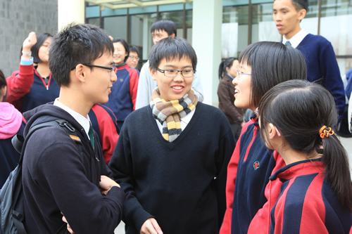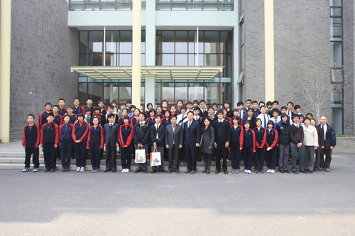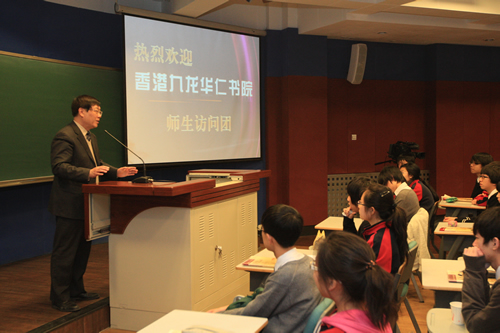 4月8日,姊妹校香港九龙华仁书院师生一行40人在该校校长陈岡博士的带领下来我校访问,高一(2)班全体同学参加接待工作。在欢迎仪式上,刘沪校长首先致欢迎词,随后陈岡介绍了九龙华仁书院的历史,京港学生分别用精心制作的PPT展示了各自的校园生活,并演唱校歌。两同学还同上历史课,午餐后我校同学陪同香港同学参观校园。