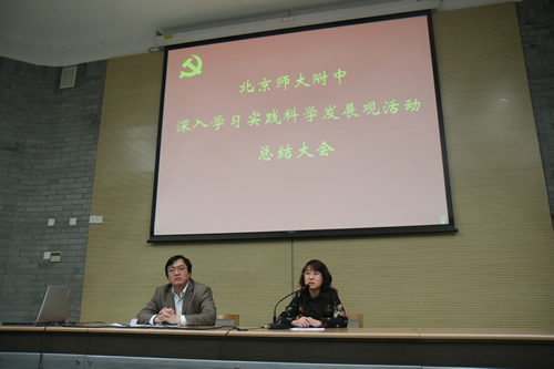 党总支书记、校长刘沪同志对我校的学习实践活动进行了总结。他回顾了我校学习实践活动所开展的各项工作,并结合这次活动,分析了学校在学校发展和工作作风方面存在的问题,提出了切实可行的整改措施和办法,以促进学校科学发展。