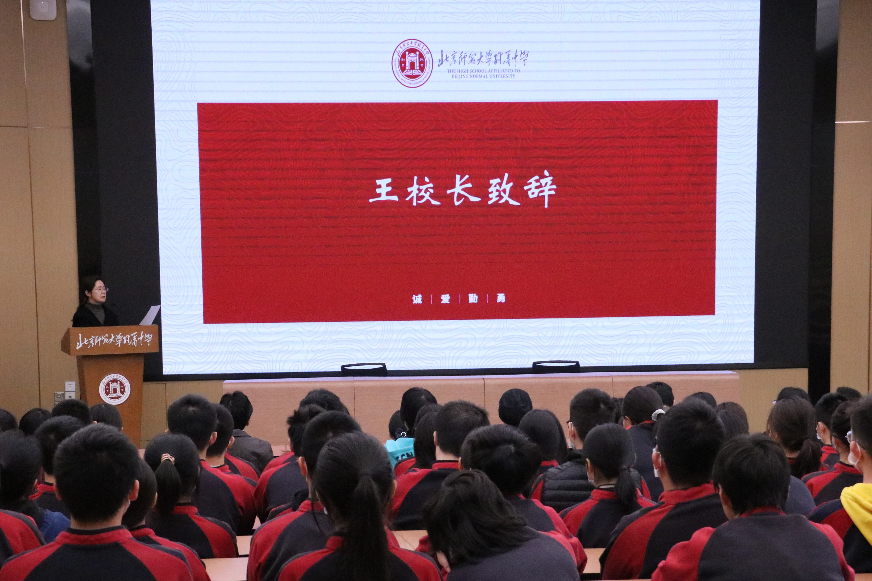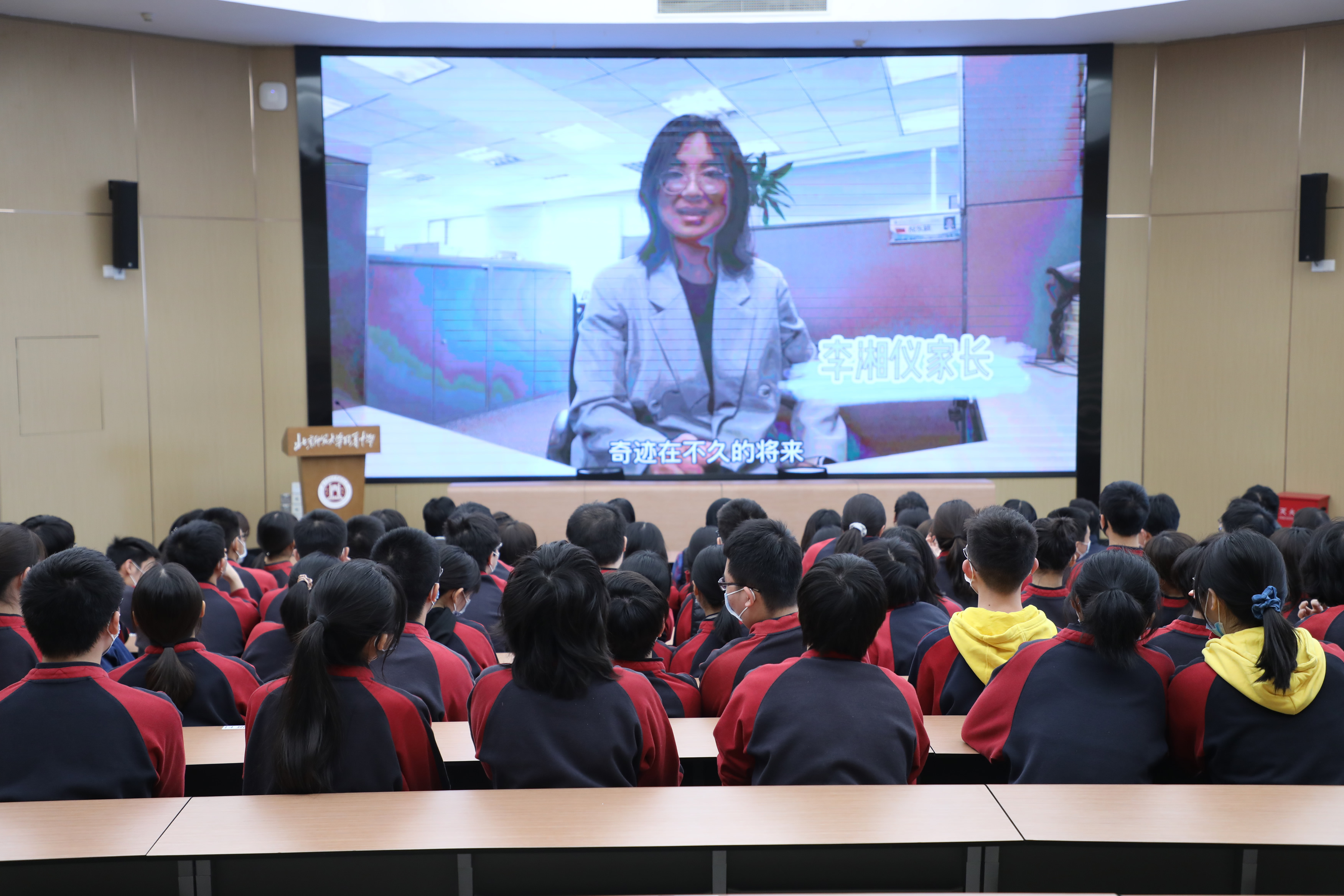 誓师大会以高二AP家长们的助威视频开场,每位家长都为孩子们送上了最真挚的祝福和期望。王莉萍校长寄语高二AP师生:附中有许多校友留学海外并学成归来,用自己的学识报效祖国,希望AP同学向前辈们学习,成为有梦想、有教养、有境界、有担当的附中人,为母校争光添彩。