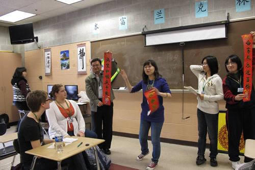 附中师生给美国同学讲解中国春节民俗