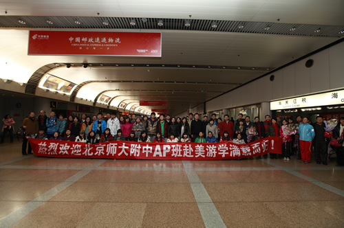 2012年1月13日至2月1日,无关键词教师综合课程处李磊主任、教学教研处冯健主任和雷广粮、李贤军、刘蔚岚等老师带领29名附中AP班学生赴美国进行游学活动。