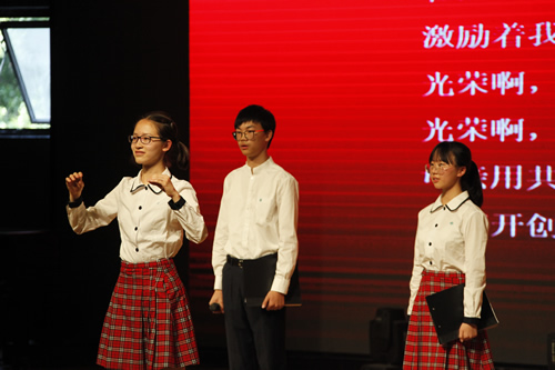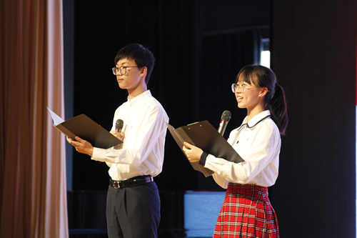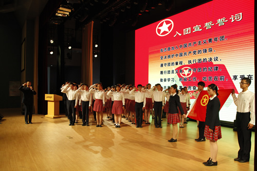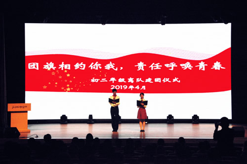 本次活动以回顾同学们第一次戴上红领巾的样子作为暖场,共收集了近50位学生代表的第一次戴上红领巾的照片,同时以采访的方式,共同重温了第一次戴上红领巾时的光荣感和使命感。重温队歌、呼号,珍藏红领巾,同学们在充满仪式感的氛围中摘下了陪伴他们多年的红领巾。在观看学生制作的《我和祖国共成长》的视频之后,出团旗、佩戴团徽、入团宣誓、老团员代表讲话、新团员代表发言、集体唱响团歌,在庄严的仪式过程中,在初二同学们齐颂的“为世界进文明,为人类造幸福,以青春之我,创建青春之家庭,青春之国家,青春之民族,青春之人类,青春之地球,青春之宇宙!”中,本次离队建团仪式圆满落幕。