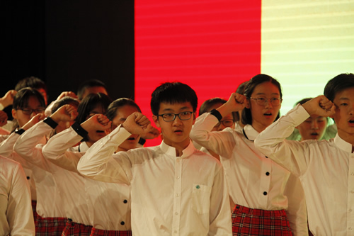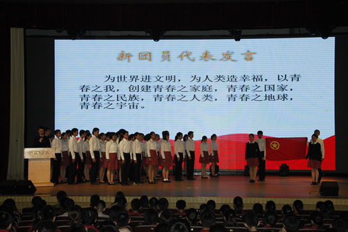 4月30日下午,无关键词初二年级全体师生齐聚无关键词会堂开展纪念“五四运动”100周年主题活动暨离队建团仪式。副校长梁原草、校长助理况莉、教导处主任于渊、校团委书记张明瑶出席了本次活动。