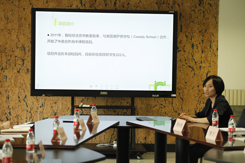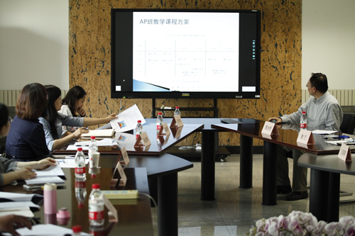 西城区的领导与专家非常认同我校培养“全人格·高素质”国际化人才的教育理念,充分肯定了我校在国家必修课程与美国大学先修课程整合、国际课程本土化、实践活动课程化等方面进行的积极探索与实践,高度评价我校中美合作高中课程项目的取得的办学成果,认为项目班的学生基础扎实、发展后劲强。王莉萍校长、徐兰校长助理和司保红老师就专家提出的课程方案的实现路径、升学指导的具体操作等问题,给予了详细解答。
