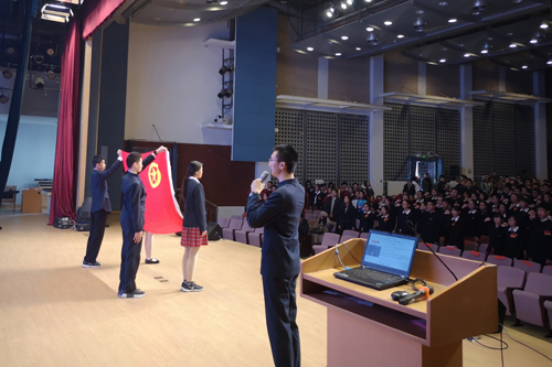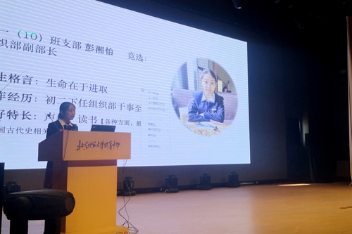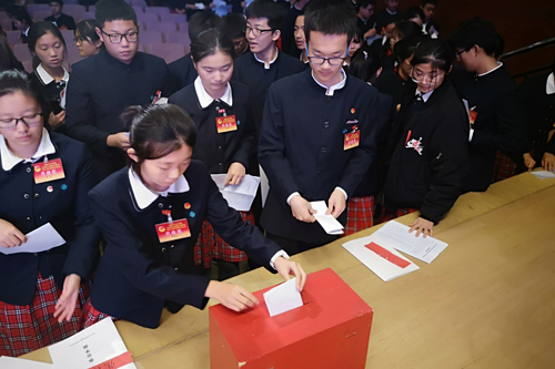 校团委副书记高二年级刘雨霏同学代表2018-2019学年度委员会向大会作工作报告,大会还梳理了由全校56个支部联合提交的共33份提案,为上一届团委干部颁发荣誉证书,并选举产生了新一届共青团无关键词委员会。