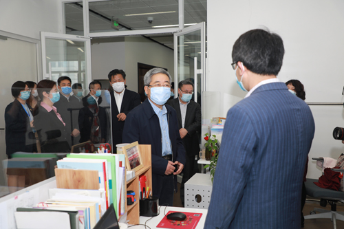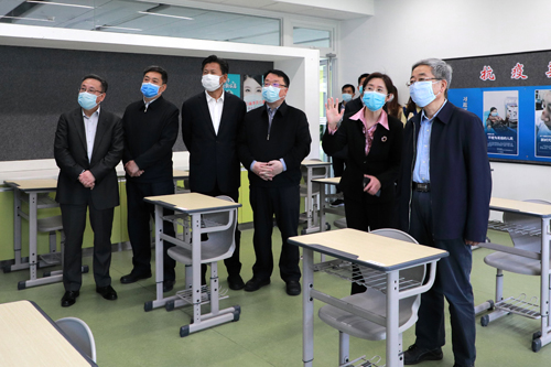 陈宝生部长一行走进教室、医学观察室、隔离点进行了实地查看,认为我校为学生设置放学临时等候区和分类隔离观察室等举措考虑得很细致、很周到。在教师办公室,陈部长还看望了返校教师,鼓励他们以疫情防控为契机,积极探索教育教学模式创新和育人方式变革,更好推动教育事业发展。