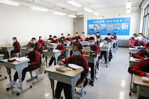 5月11日,南新华街18号迎回了初三年级的附中人。同学们终于结束了漫长的居家学习的日子,满怀希望的回到了阔别已久的学校,沉寂许久的东区校园在同学们欢声笑语、郎朗书声中又充满了勃勃生机。由于疫情的影响,同学们改换了教室和座位。依旧是那个校园,却有了不一样的学习生活。