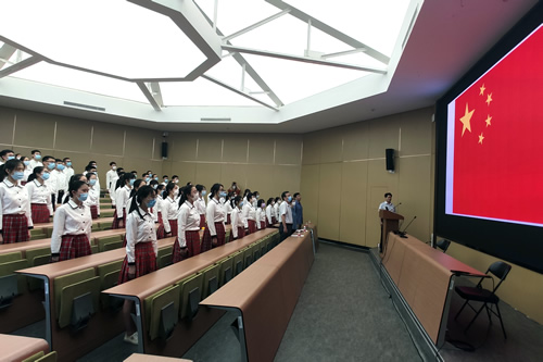 盛夏的阳光,格外灿烂,沉寂多时的附中校园,也因同学们的归来恢复了往日的生机。嘹亮的国歌响起,全体附中师生起立,高唱起《义勇军进行曲》。看着鲜艳的五星红旗,相信每一位同学心中都会觉得这姗姗来迟的“开学一课”来之不易。
