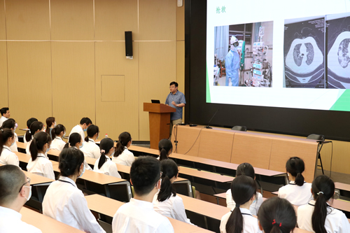 “在武汉战疫期间,我们每天都能感受到来自全国各方的力量对我们的支持和关注。”李医生回忆:他援藏期间曾帮助过的企业得知他在武汉抗疫之后,专门从西藏运送一批食物到武汉。这个过程遇到了很多困难,但是在各方帮助下,最后送到了李医生的团队当中。像这样的企业和社会力量太多太多了,让大家时刻都能感受到前线并不只有医护人员在战斗,整个中国都在与他们共同坚守。在返回的当天,他们受到武汉人民的热情欢送,其中有年轻的父母带着孩子一同为他们送行,年幼的孩子向他们行鞠躬礼。返京之时,民航以“过水门”礼相迎。李靖医生用自己在武汉的亲身经历,为我们展开了“武汉保卫战”取得决定性成果背后的一个个感人故事。英雄的故事让所有同学感受到这些“逆行者”的大仁、大爱、大义、大勇,也感受到我们国家在这次战疫过程中对武汉史诗般的援助和保卫。