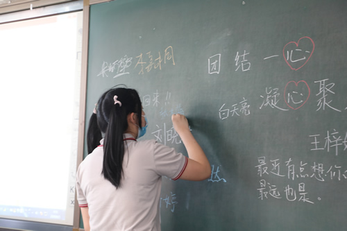进到教室就发现了老师手绘的欢迎板报,也有同学现场布置,签名留念,俨然一场黑板报大赛。