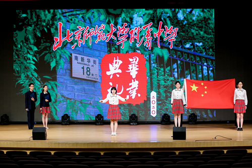在气势磅礴的开场词后,铿锵有力的国歌奏响,现场的师生和屏幕前的同学们一同高声歌唱。国歌唱罢,顾校长宣读了20届高中毕业生名单,一张张熟悉的面孔,一个个熟悉的名字闪过屏幕,宣告了同学们圆满完成高中学业;梁校长宣读了市区优秀学生及优秀班集体名单,更增添了典礼的庄严之感。