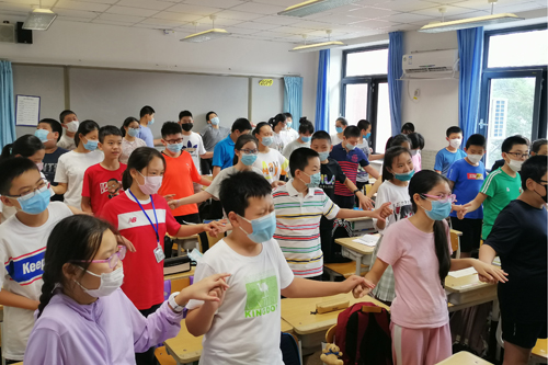 在同一天下午,初一年级班主任也对全体初一同学开展了入境教育活动,他们早在开学前就与学校心理老师进行了集体备课,做好了充分的准备。热身之后,同学们相继进行了“兴趣猜猜猜”、“谁和我一样”、“人多力量大”等活动,有趣的活动设计拉近了同学间的距离。活动结束后,班主任老师进行总结:希望在新环境下,同学之间要积极交流,互帮互助,未来三年一起度过,共同发展。