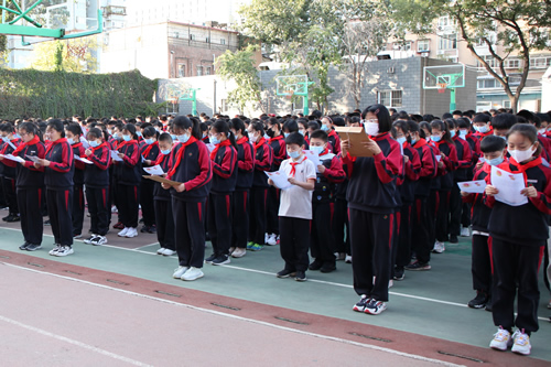 学校党委祝贺初一年级少先队大队成立,并希望少先队员们珍惜中学时光,胸怀理想,锤炼品格,从日常的一点一滴做起,奋发图强,成长为能够担当民族复兴大任的时代新人。