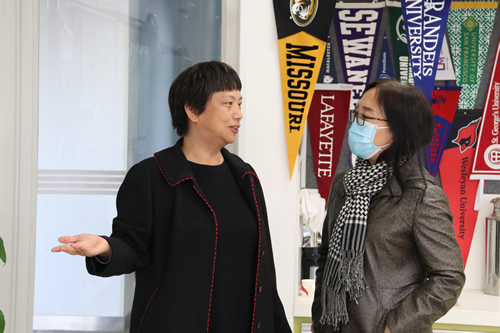 2020年11月6日下午,西城教育工委副书记程宏梅,西城区教育委员会国际合作与交流科副科长姚吉磊,西城区教育国际交流中心主任赵金春,教师王乙楠、李文静一行五人来我校调研中美合作高中课程班项目。许建勇书记、徐兰校长助理带领AP项目团队成员向领导们进行了专题汇报。