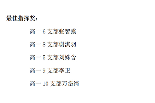 梁原草副校长在对此次“一二・九”合唱比赛进行点评的时候表示,这样的合唱比赛令人非常激动。他高度肯定了同学们严肃认真的态度和良好的精神面貌,认为同学们的演唱较好地把握住了感情基调,较好地传达出了歌曲的思想内涵和情感力量,总体上发挥出了高水平,体现了开学以来年级形成的正能量,与今天的“一二・九”合唱的主题十分吻合。