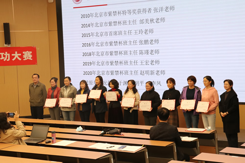 为了持续开展班主任队伍专业化提升工程,提高班主任工作的科学性,增强德育工作的执行力与引领力,2021年3月26日我校举行了“首届班主任基本功大赛”启动仪式。出席大会的有王莉萍校长,许建勇书记,梁原草副校长,况莉校长助理,德育干部、于渊主任、历年荣获“紫禁杯”班主任称号的老师、参赛班主任,新入职班主任。