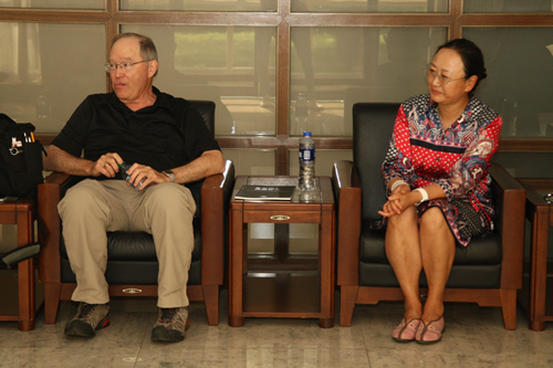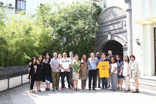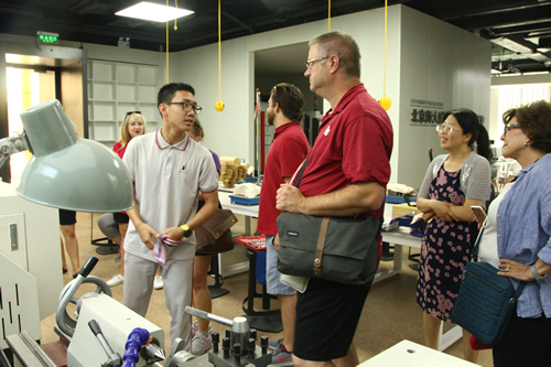 6月15日上午,北京师范大学孔子学院处王军玲老师的带领美国俄克拉荷马大学的9位教育官员来校访问。来宾们首先观摩了正在进行的高三毕业典礼,他们被现场庄重而温馨的气氛所深深感染。在随后的校园参观中,他们参观杏坛、三味书屋、科技创新教室,还观摩了独具中国特色的课间操。在科技创新教室,我校高一2班的徐若涵同学即兴用英文向美国客人进行了详尽而专业的介绍,让大家赞叹不已。在接待室,李敏副校长对来宾表示热烈欢迎,她向客人们介绍了我校的概况,特别向他们介绍了我校和俄克拉荷马州的堪萨德中学合作的中美合作高中课程项目,来宾们对此颇感兴趣,希望能与附中加强合作。最后,来宾们走进初二7班郭文涛老师的英语课堂,参与到同学们关于土豪金车和其他大众化的共享单车的讨论当中,中外师生一起上了一堂别开生面的英语课。