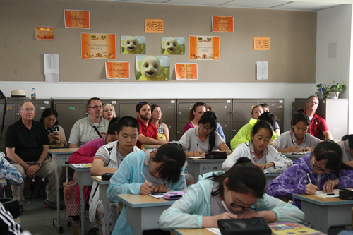 6月2日下午,来自美国旧金山联合学区的12位教育官员在北京师范大学孔子学院处王晓川老师的带领下来我校参观访问。许建勇书记致欢迎辞,并就我校课程设置、学生评价、小学与初中衔接等问题,与来宾们进行了交流。集团校办公室刘宗尧主任也参加了座谈。座谈结束后,旧金山联合学区代表团参观了我校的杏坛、三味书屋、钱学森纪念馆、科技创新教室、美术教室和音乐教室,还走进我校初一13班,听了姬祎宁老师的英语课。他们对学生的课堂表现大加赞赏。课后,部分来宾还和姬祎宁老师就英语教学问题进行了深入的探讨。
