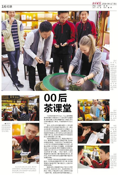 2016年4月17日的北京晚报报道了我校国际班的“00后茶课堂”。